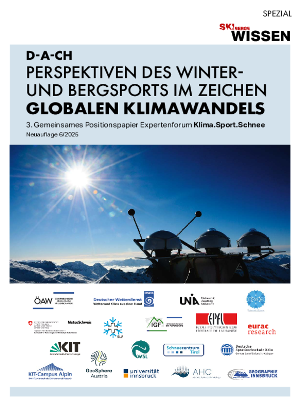 2019 und 2022 veröffentlichte das Expertenforum „Klima.Sport.Schnee“ die ersten beiden Positionspapiere. Für das soeben erschienene dritte Positionspapier arbeiteten die Fachleute die neuesten Erkenntnisse der Forschung ein und erweiterten den Themenbereich vom Wintersport auch auf den Bergsport im Sommerhalbjahr. Außerdem wurden Wissensdefizite und Handlungsansätze zusammengefasst.
