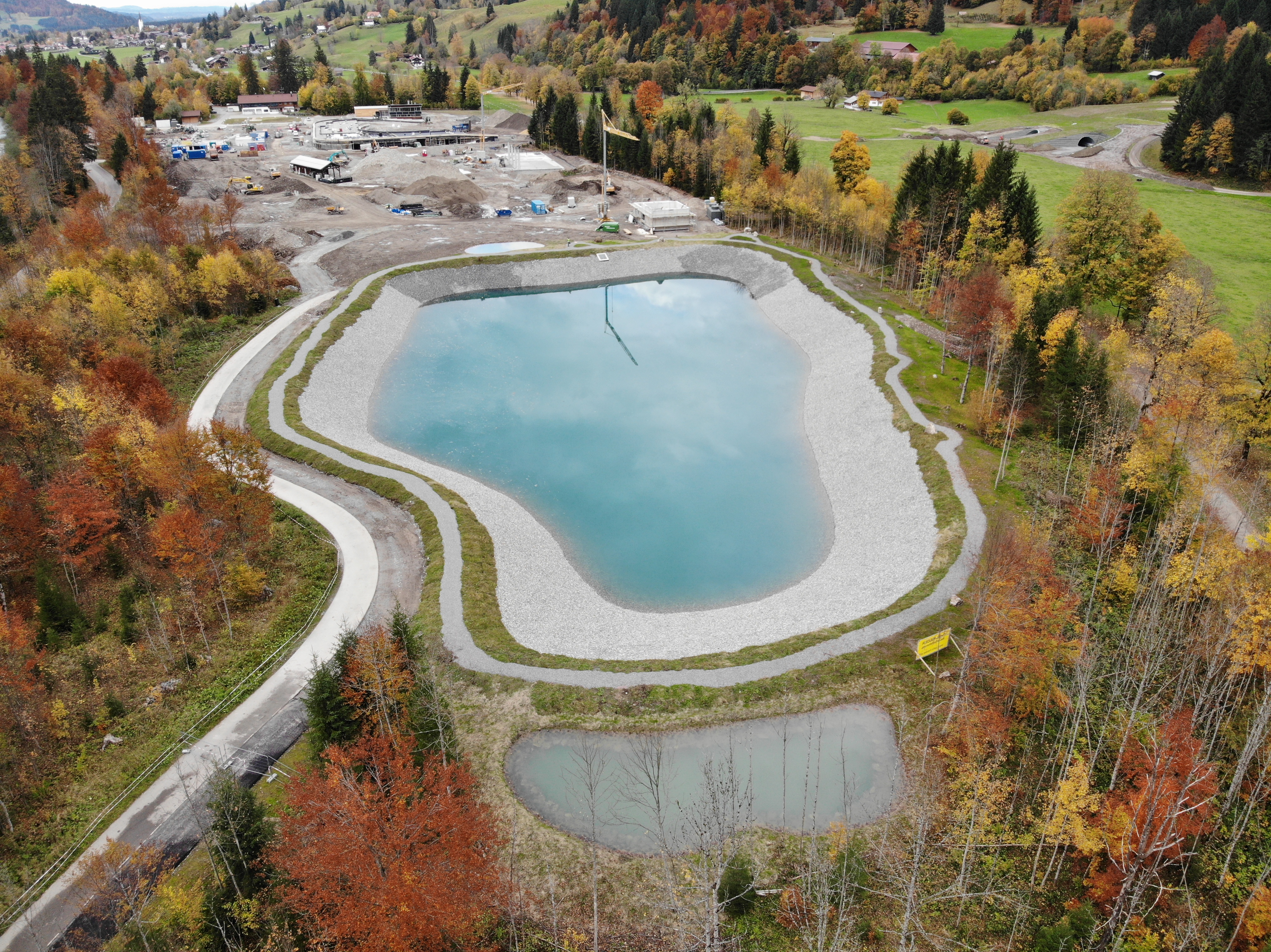 Mit 40.000 Kubikmeter Fassungsvermögen ist der Speicherteich für die Beschneiungsanlage des Langlaufzentrums einer der kleinsten im Allgäu und fügt sich inzwischen harmonisch in das Landschaftsbild ein. Im Zuge der Umbaumaßnahmen werden zwei Flachwasserzonen im Bereich des Schneiteichs als Amphibienlaichgewässer angelegt. Damit wird ein Ersatzbiotop hergestellt, die den Amphibienbesatz im Speicherteich reduzieren soll. Während der Bauphase wurden mehrere Interim-Amphibienlaichgewässer angelegt, die von Fröschen und Kröten sehr rege angenommen wurden. Auch ein seltener Teichmolch konnte gesichtet werden.